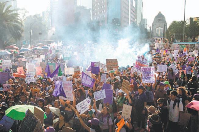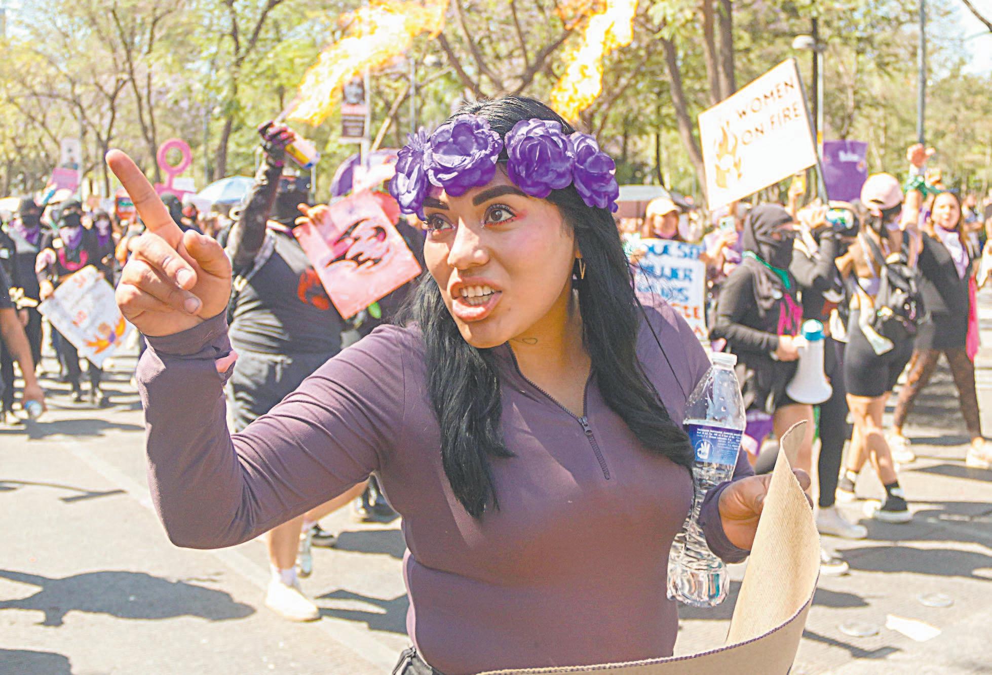 granaderos apiñados alrededor del Palacio de Gobierno Estatal, donde las manifestantes prendieron varias fogatas en honor a las víctimas de feminicidios. Como en cada ciudad del país, las manifestaciones grandes o pequeñas, pacíficas o llenas de demostraciones de inconformidad con los gobiernos estatales, la marcha del Día Internacional de la Mujer unió a millones de mexicanas. (Agencias)