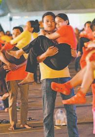 Cientos de camboyanos afrontaron el pegajoso calor tropical para establecer un curioso récord con el mayor número de hombres llevando a una mujer en brazos al mismo tiempo.