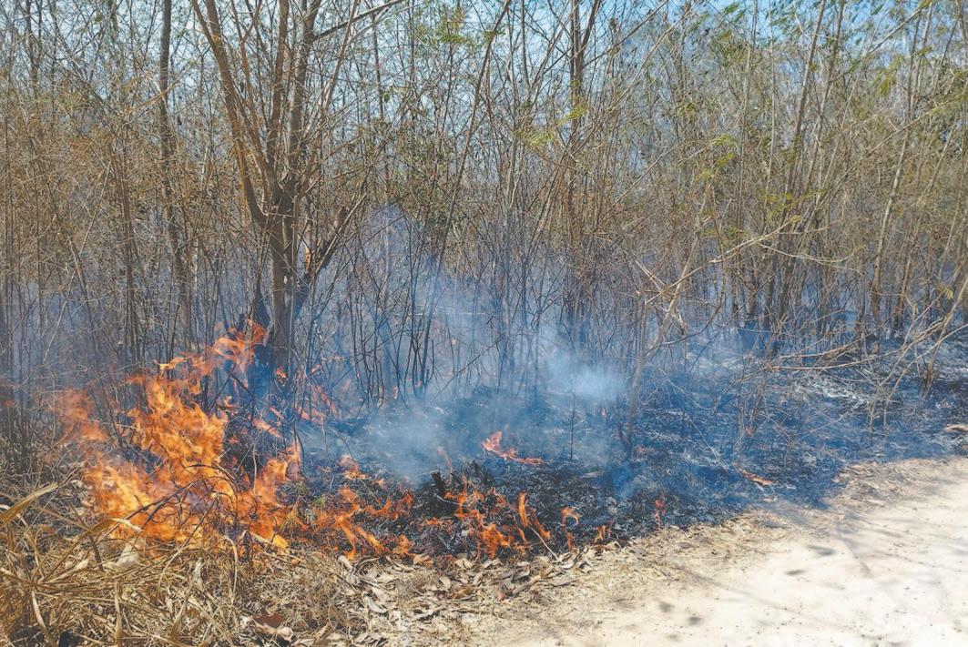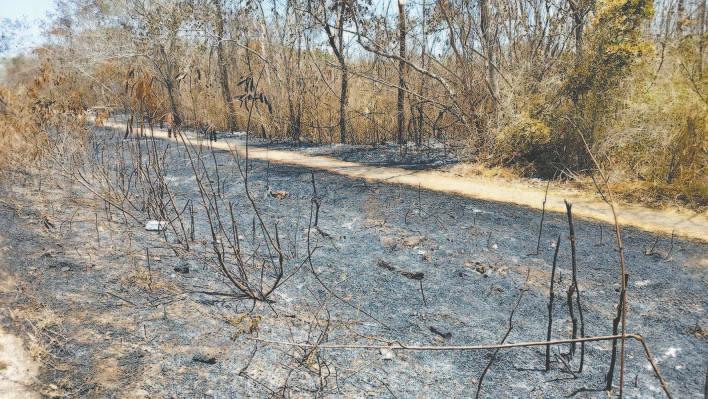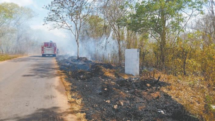 EL fuego ha dañado alrededor de 200 hectáreas de pastizales, a los que se suman los siniestros forestales en al menos siete ejidos del municipio, donde se han consumido más de mil 500 hectáreas de selva, además de poner en riesgo a algunas comunidades.- (Lusio Kauil)