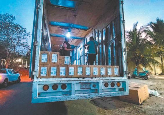 afl uyendo hacia los puntos de embarque, donde cargan donaciones de agua, comida y medicamentos para distribuir a las casas aún habitadas.