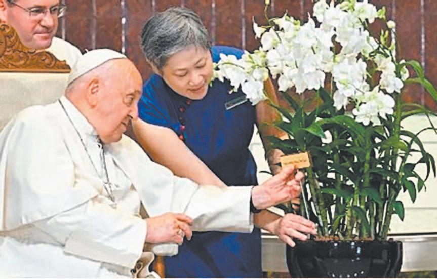 Singapur celebró su llegada presentando un nuevo híbrido de orquídea que lleva su nombre, la dendrobium His Holiness Pope Francis. La planta, presentada durante una ceremonia de bienvenida, “transmite una belleza pura y serena” de pétalos de blanco marfil con un detalle rosa en el centro, según la Junta de Parques Nacionales.