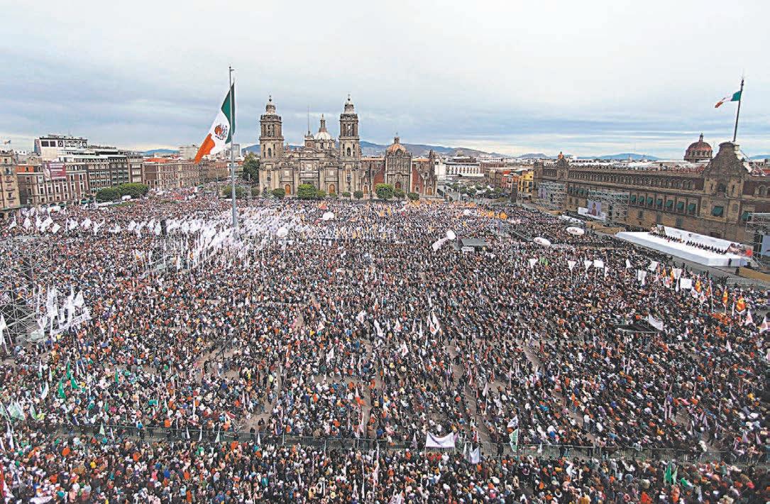 ANTE 350 mil mexicanos -según cifras oficiales- que llenaron el Zócalo, corazón de la CDMX, la Presidenta destacó que cada acción suya está orientada a fortalecer los derechos y las condiciones de los ciudadanos. Con un enfoque firme en la equidad y el respeto, dijo, se están materializando proyectos que mejoran la vida de millones: apoyo a adultos mayores, becas, mejor atención en salud y más oportunidades para el campo. Además, las mujeres y los jóvenes ocupan un papel central y, así, México marcha con seguridad, con un porvenir prometedor, renovado, que se basa en el humanismo, respaldado por la solidaridad del pueblo.- (POR ESTO!)