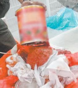 COLÓN, Qro.- Elementos de la Guardia Nacional (GN) aseguraron 12 kilos de aparente droga sintética cristal , ocultos en latas con etiqueta de salsa para pizzas en una empresa de mensajería y paquetería en el municipio de Colón, Querétaro.