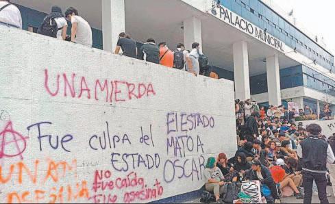 rra de manera pacífica; sin embargo, algunas manifestantes llevaron a cabo pintas en paredes del Ayuntamiento, sin mayores disturbios. “No fue caída, fue asesinato”, gritaron los alumnos, quienes en reclamo de las autoridades señalan “tu muerte será vengada”. (Agencias)