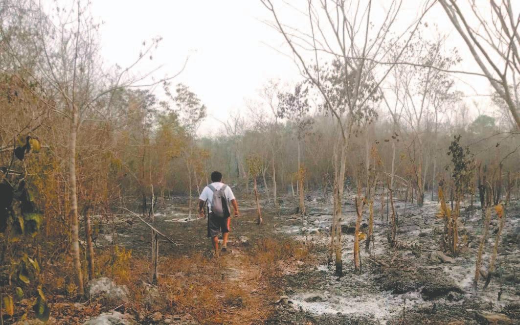 UNA quema agropecuaria provocó el fuego que acabó con 6 parcelas de “Sembrado Vida” y las colmenas de tres apicultores.- (Justino Xiu)
