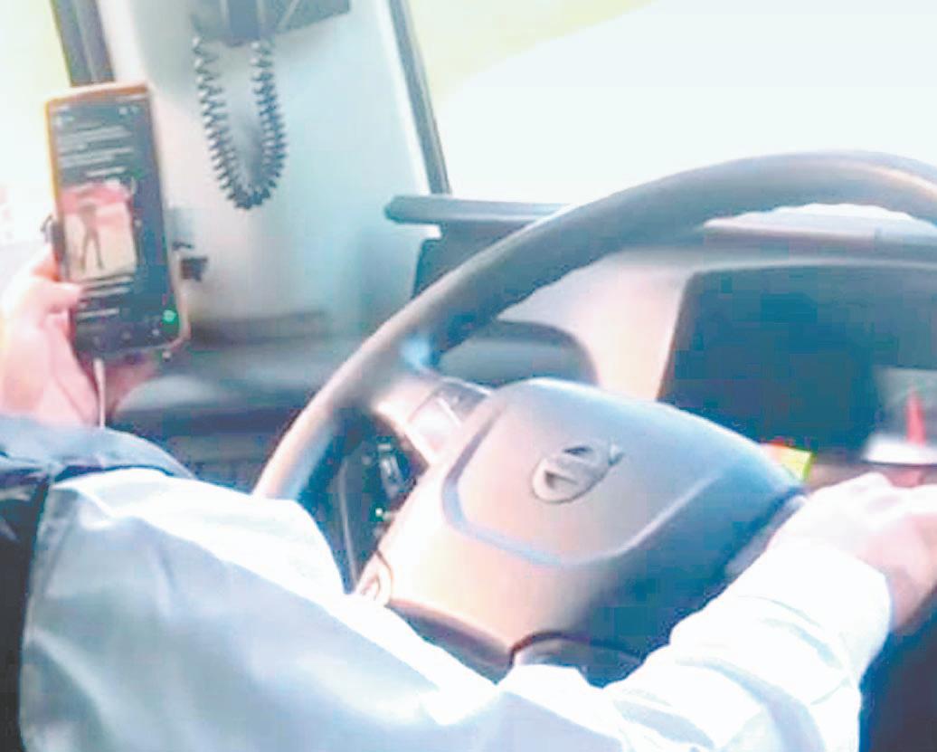 Exhiben a chofer de ADO conduciendo y hablando por celular