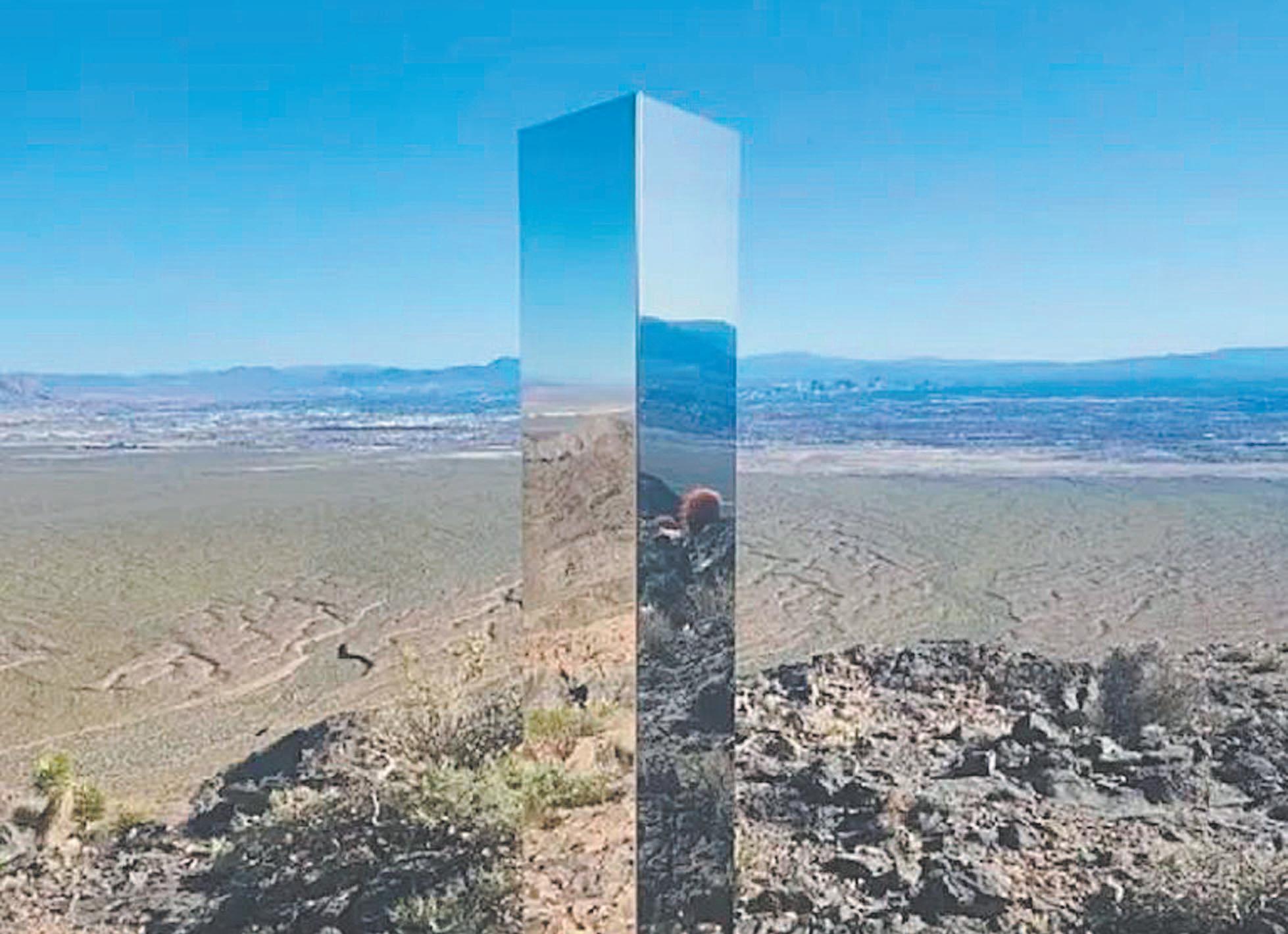 El objeto rectangular totalmente cubierto de espejos fue encontrado el fin de semana en una zona de senderismo, a una hora al Norte de la famosa Ciudad del Pecado.