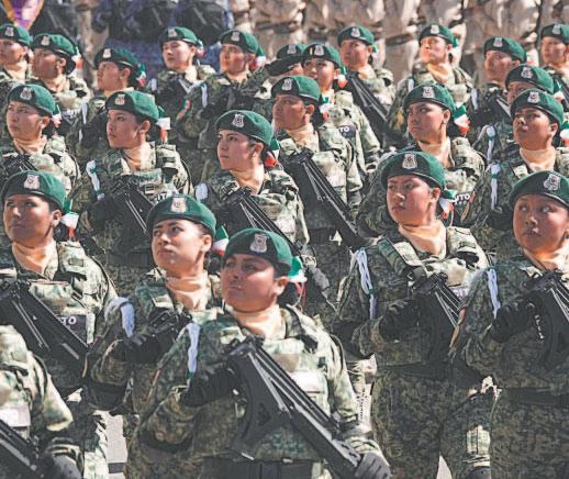 El 40% de la columna del desfile está compuesto por mujeres y en total participan 2 mil 576 elementos de la Guardia Nacional, Fuerza Aérea y Ejército.