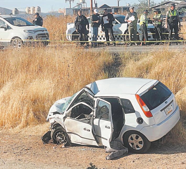 GUADALUPE, ZAC.- Un fuerte accidente entre dos vehículos cobró la vida de cuatro personas en la carretera federal 45, en un hecho que sucedió alrededor de las 15:00 horas de ayer, cuando colisionó un Datsun azul y un Ford Fiesta blanco sobre la vía mencionada. (Cuartoscuro)
