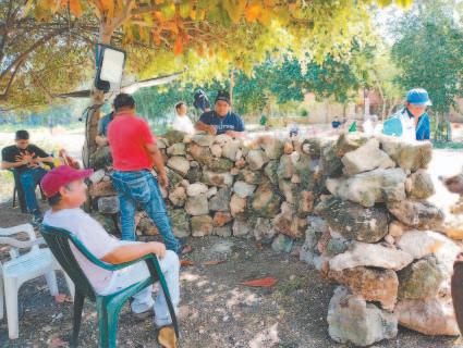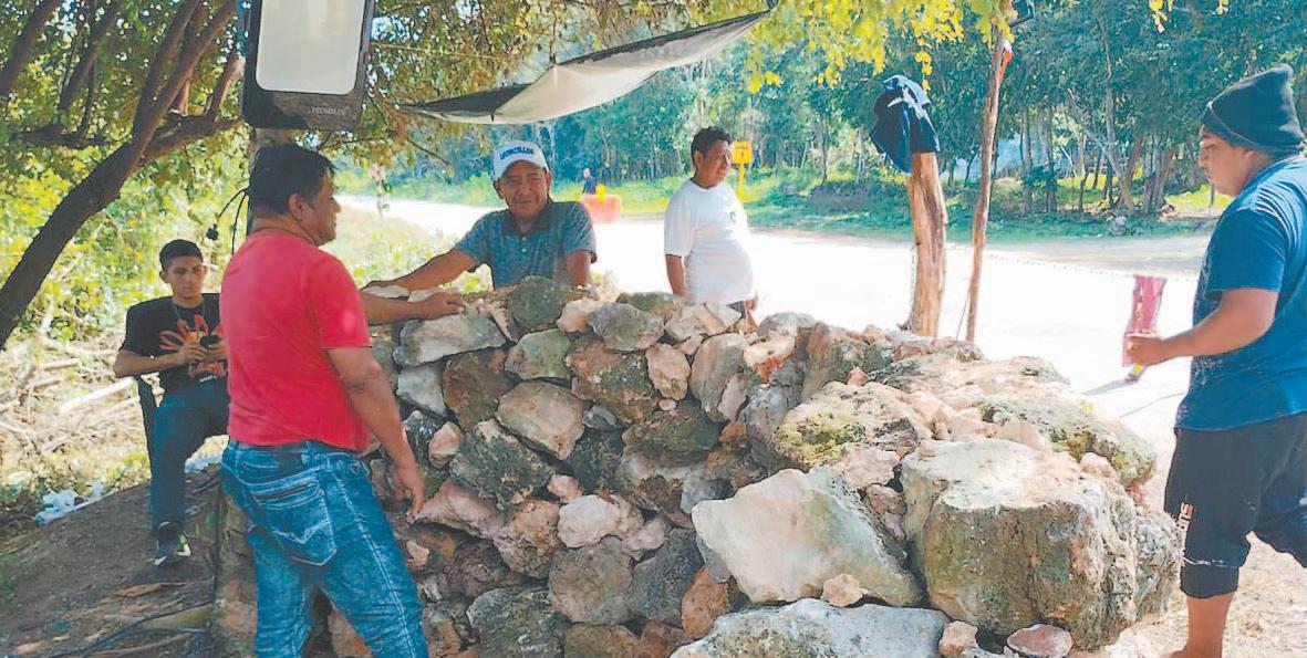 LOS integrantes del núcleo agrario siguen firmes en la lucha por sus derechos; están construyendo una caseta de cobro.- (Justino Xiu)