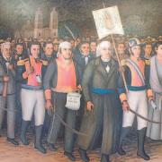 nores que portaban una manta de colores en la que se podrían leer: Todos somos Tila y No hay caminos hacia la paz, la paz es el camino