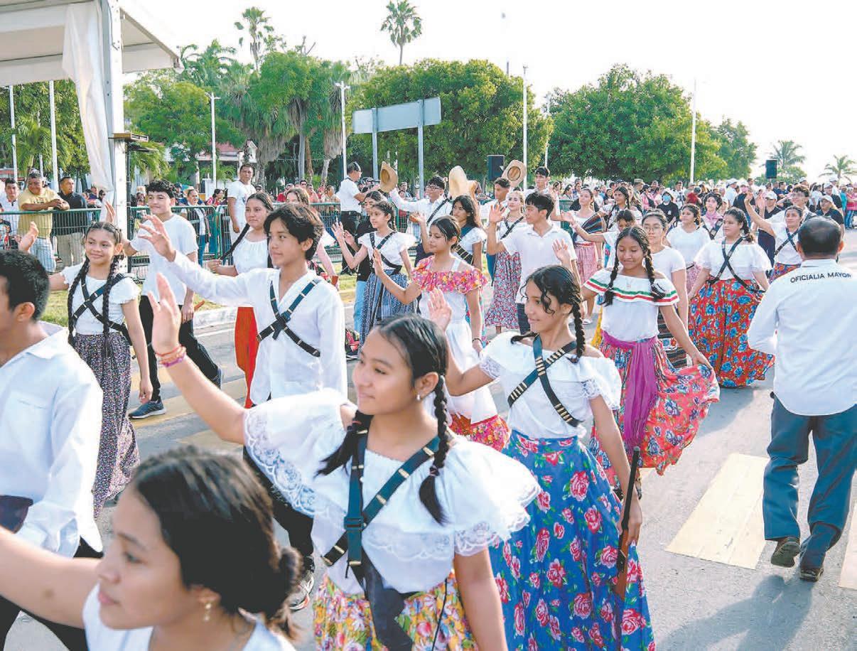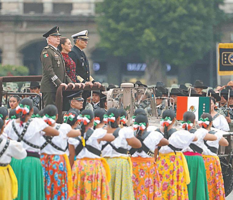 Comandanta Suprema de las Fuerzas Armadas, que como parte de los 114 años de la Revolución Mexicana, desfilaron, sin novedad, ante el pueblo de México: 38 banderas; 2 mil 576 integrantes de las Fuerzas Armadas y de la Guardia Nacional; 168 integrantes de pueblos originarios de México; 112 charros; 297 niñas y niños; 34 vehículos; 11 aeronaves; así como tres águilas; 596 caballos; y una locomotora.