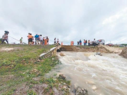 LOS torrenciales aguaceros que generó el meteoro provocaron deslaves en las carreteras y puentes, algunos de los cuales están a punto de colapsar; entre los principales puntos afectados está la vía hacia la comunidad de Morocoy.- (Jorge Villagómez)