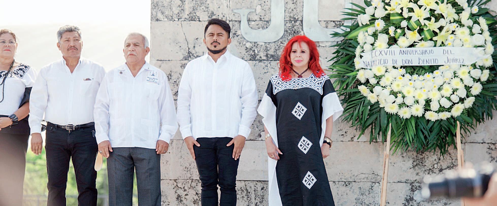 en Guelatao de Juárez, Oaxaca, la ceremonia por el 218 Aniversario del natalicio del Benemérito de las Américas -la última en su sexenio-, acompañado en el presídium por el gobernador, Salomón Jara, y el presidente municipal, Aldo González.