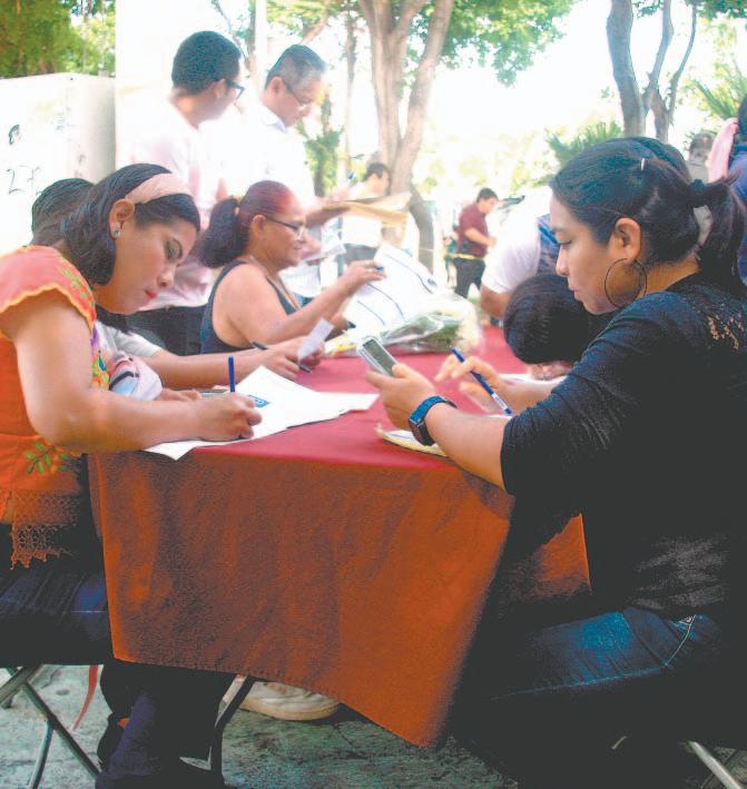 para votar, pasaporte, cartilla, cédula profesional, credencial de Inapam o carta de identidad. Asimismo, CURP (de reciente impresión), comprobante de domicilio (no mayor a seis meses: teléfono, luz, gas, agua o predial), comprobante de nivel máximo de estudios (puede ser el mismo documento presentado en el primer punto) y llenar formato de contratación que se entrega exclusivamente en los módulos
