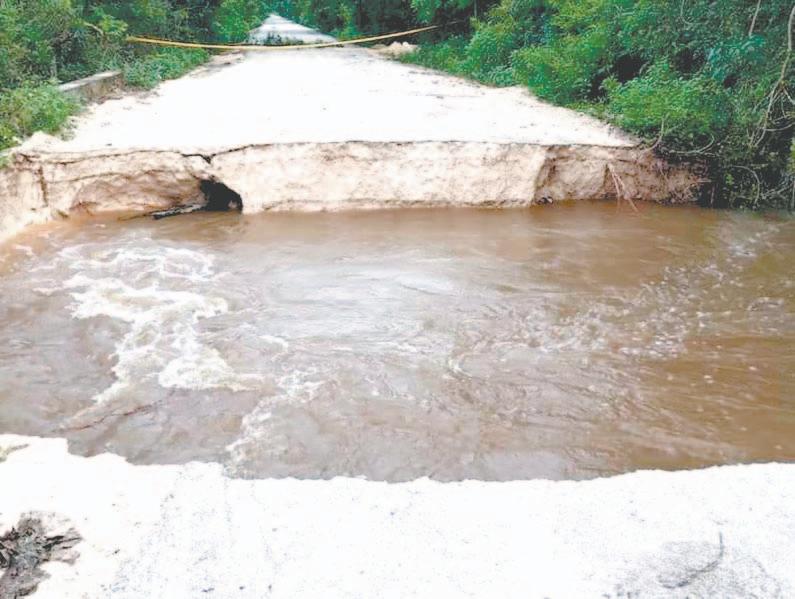 LA noche del lunes el agua terminó de deslavar el camino, creó un enorme canal, aisló a los habitantes y afectó los cultivos y al ganado a causa de las inundaciones; Protección Civil inspeccionó el lugar y sólo dijo que permanecerá cerrada la vía.- (Jorge Villagómez)