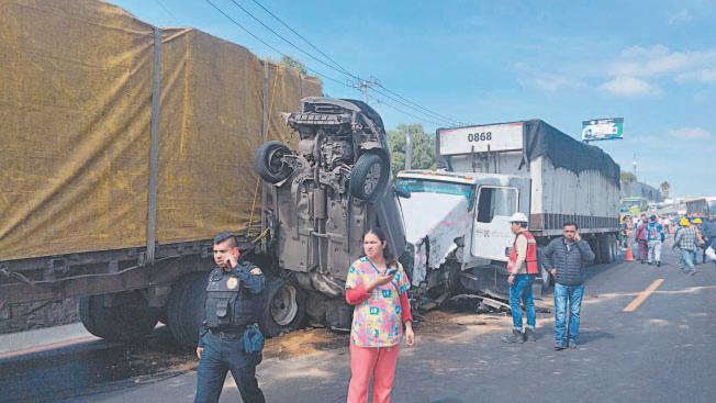 Tráiler se queda sin frenos, choca en la MéxicoPuebla y deja a 12 heridos