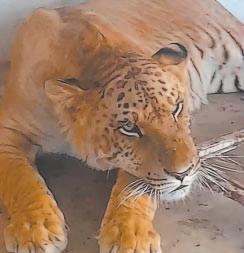 En el patio de una de las viviendas, encontraron un felino cruza de un león con una tigresa o un ligre, como se les conoce de manera científica, de una edad promedio de un año dos meses, el cual estaba dentro de una jaula, aparentemente en buenas condiciones de salud.