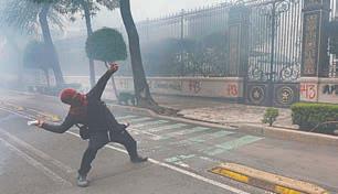 Los estudiantes arrojaron explosivos contra la fachada. (Agencias)