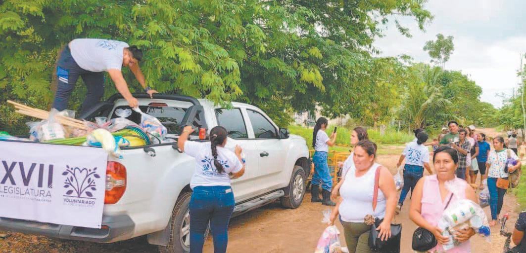 LOS Congresistas entregaron artículos de limpieza, frijol y arroz en zonas que ya están secas, luego de las lluvias. Para llamar la atención, se confeccionaron camisetas personalizadas de la XVII Legislatura. Elda Xix, recién electa para un cargo federal, brilló por su ausencia.- (POR ESTO!)