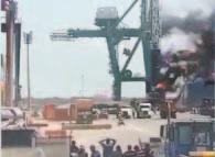de la Guardia Costera y de la Policía desplegados muy cerca de los escombros y del portacontenedores averiado.