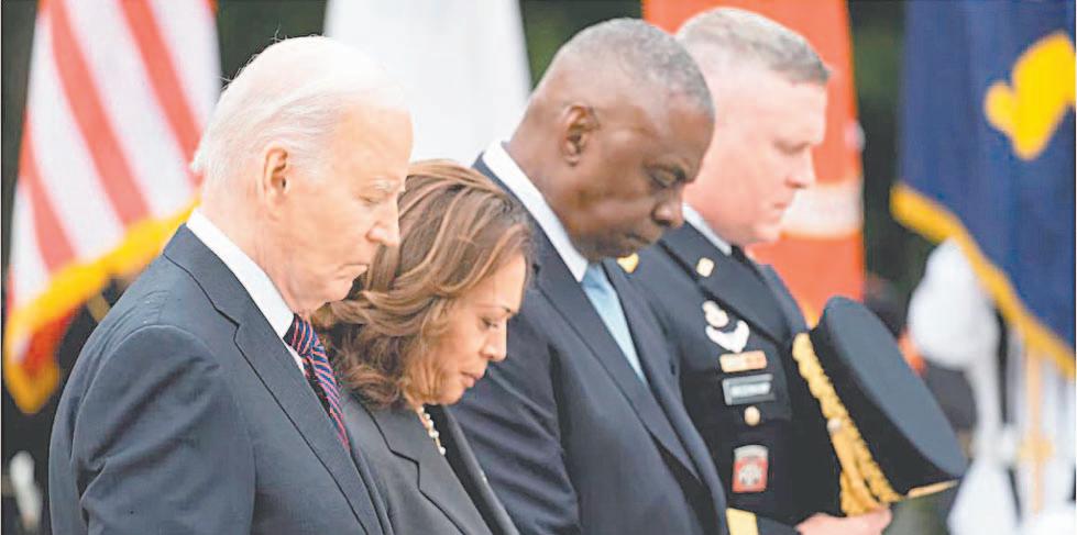 rio de Defensa Lloyd Austin, Trevor J. Bredenkamp, comandante del Distrito Washington, Biden colocó una corona de flores en la Tumba del Soldado Desconocido En sus declaraciones, Biden invocó el aniversario esta semana de la muerte de su hijo Beau, quien estuvo desplegado en Irak y posteriormente falleció a causa del cáncer cerebral el cual el Mandatario atribuye al tiempo que pasó estacionado cerca de incineradores de sustancias tóxicas, a fin de resaltar la importancia de honrar el servicio de aquellos que volvieron a casa heridos, además de los fallecidos.