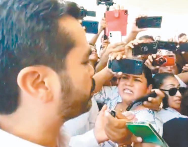 AL menos dos mujeres periodistas resultaron golpeadas durante los forcejeos con los guardaespaldas, a otros los empujaron e insultaron; el abanderado emecista se negó a responder los cuestionamientos de los medios de comunicación.- (POR ESTO!)
