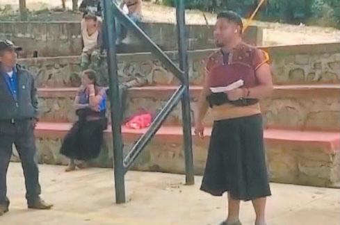 Pérez Sántiz fue vestido de mujer y amarrado en la cancha de básquetbol, donde fue obligado a grabar un video donde pide a las autoridades lleven los 1.5 millones de pesos que reclaman sus captores para su liberación. “Sólo quiero pedir que si pueden venir las corporaciones a entregar la paga”, ruega.