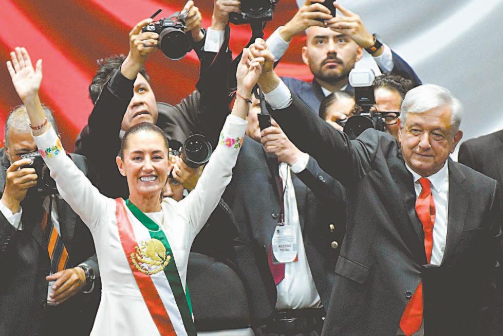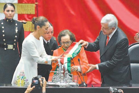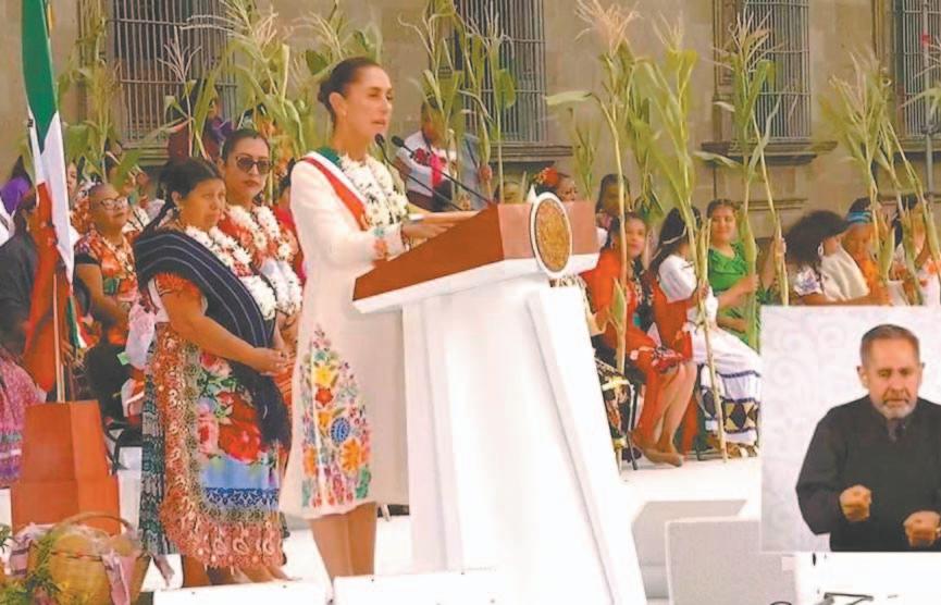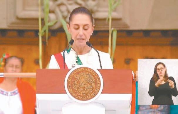DESPUÉS de 200 años de la conformación de la República y de 300 años de la Colonia, el país fue testigo ayer de la llegada de todas las mujeres a conducir los destinos de la nación, encarnadas por sólo una que tomará las decisiones más importantes durante los próximos seis años. En un acto lleno de simbolismos, ante más de 105 dignatarios del mundo, la Mandataria recibió la Banda Presidencial de manos de la líder izquierdista Ifigenia Martínez y, en la máxima tribuna, expresó que como madre, abuela y científica, pero ahora, como Jefa de Estado, refrenda su compromiso de gobernar para todas y todos, bajo los principios del Humanismo Mexicano que serán la base en la construcción del Segundo Piso de la Cuarta Transformación. Horas después, frente a Palacio Nacional, y ante casi medio millón de ciudadanos que acudieron a vitorearla, recibió el simbólico báculo a manos de 113 pobladoras originarias y afromexicanas que la acobijarán durante su nueva encomienda. Ahí explicó cómo será su administración, con un centenar de acciones, entre las que destaca la homologación de feminicidio, la inclusión del maltrato animal en la Constitución, la semana laboral de 40 horas y una reforma para evitar reelecciones, así como múltiples programas de apoyo para el pueblo que le entregó su confianza, la que, dijo, NO traicionará ni defraudará.- (POR ESTO!)