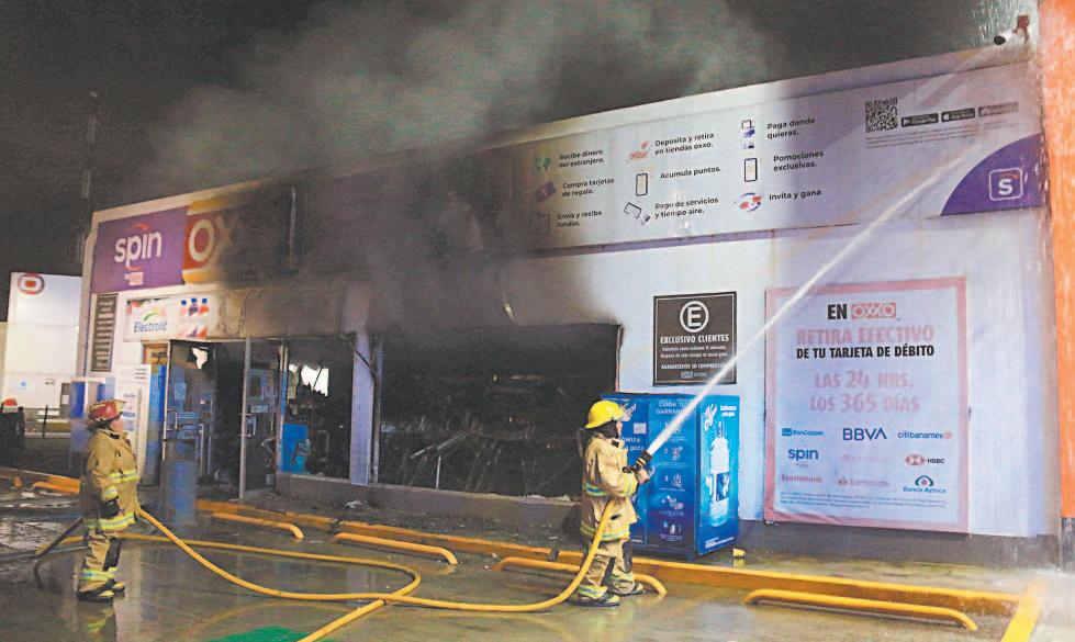 El saldo fue de cuatro tiendas de conveniencia y tres vehículos quemados, así como un uniformado lesionado durante un ataque armado a una caseta de vigilancia de la Secretaría de Seguridad y Protección Ciudadana (SSPC).