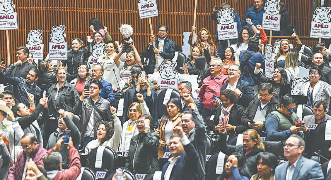 Después de que el presidente de la Mesa Directiva, Sergio Gutiérrez Luna, anunciara que los dos dictámenes serán turnados al presidente Andrés Manuel López Obrador, los morenistas y aliados comenzaron a entonar “¡Sí se pudo, sí se pudo!”. Previamente, con la presencia únicamente de legisladores de Morena, PT y PVEM, el pleno del Senado de la República declaró aprobada la reforma que transfiere la GN a Sedena. El documento avalado establece que la Federación contará con la Guardia Nacional, fuerza de seguridad pública, profesional, de carácter permanente e integrada por personal militar con formación policial, adscrita a la Sedena, para ejecutar la Estrategia Nacional de Seguridad Pública. El presidente del Senado, Gerardo Fernández Noroña, indicó que desde el miércoles hasta ayer, 26 congresos locales aprobaron la reforma, con los que se cumple el requisito de 16 Legislaturas más uno que se requieren para una reforma constitucional.
