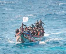 Al menos nueve migrantes murieron, 48 fueron declarados desaparecidos y 27 rescatados después de que su barca volcó cuando se amontonaron en un costado para ser rescatados. (Agencias)