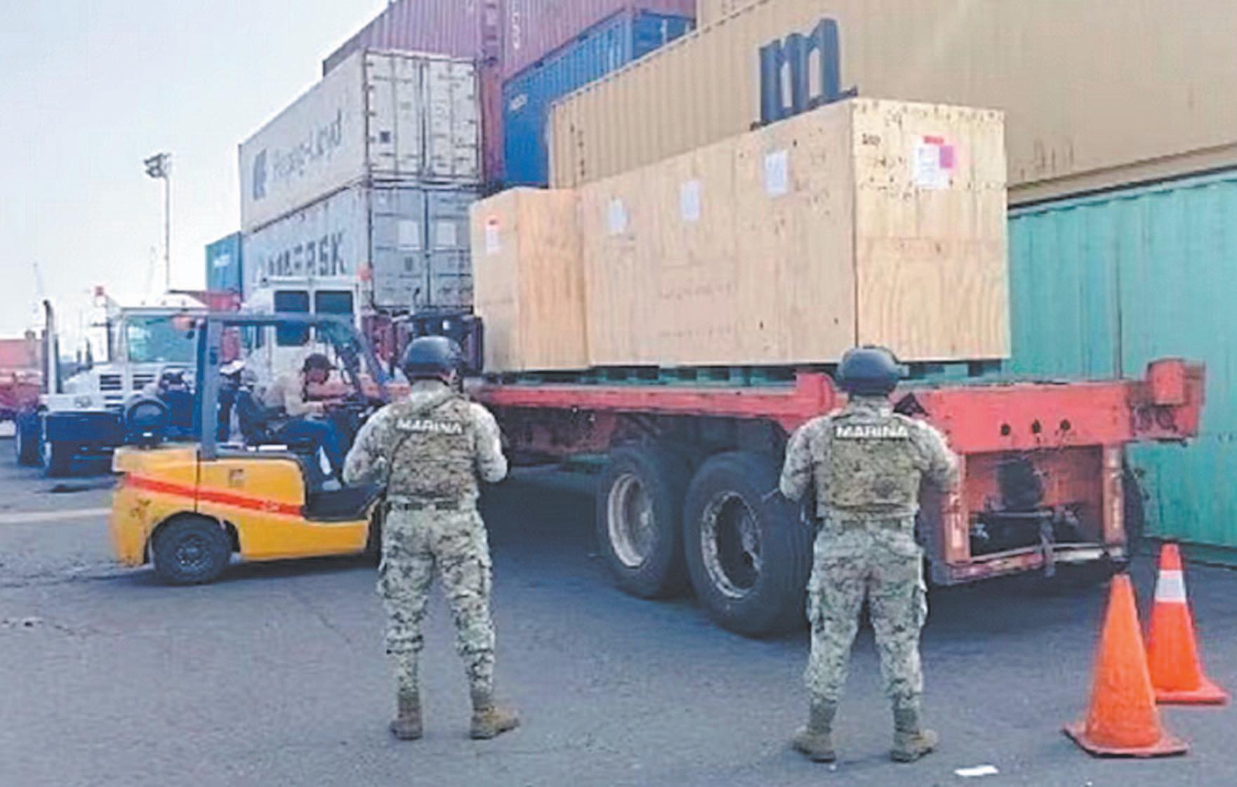En dicha revisión, elementos de la Secretaría de Marina (Semar) efectuaron los protocolos correspondientes a una tarja de exportación, por lo que en mercancía declarada como columna de piedra de cantera hallaron indicios de marihuana.