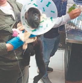 desde el lunes 25 de noviembre, fecha en la que la monita saraguato se electrocutó, autoridades de medio ambiente del municipio tomaron medidas para que recibiera atención médica urgente.