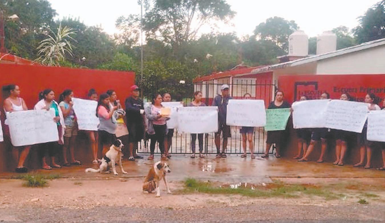 DURANTE la protesta señalaban que desde el 2022 solicitaron los mentores, por lo que no se irán hasta tener una respuesta.- (Lusio Kauil)