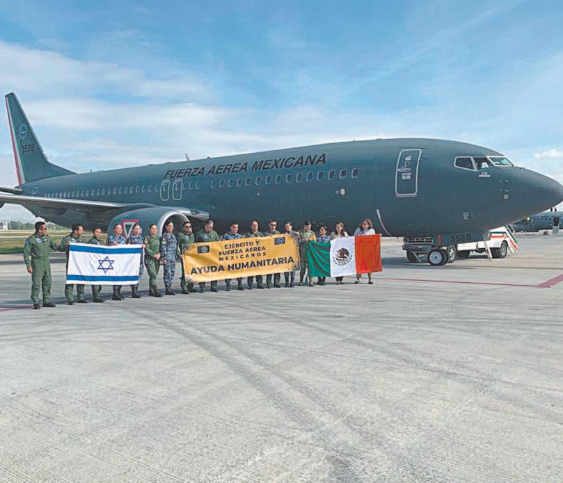 El primer avión de la FAM despegó ayer a las 10:00 horas del territorio nacional rumbo a Israel como parte de la misión de ayuda humanitaria y rescate. La primera aeronave con matrícula 3528 fue cargada con ayuda humanitaria en la Terminal Militar de Pasajeros del Aeropuerto Internacional Felipe Ángeles (AIFA) y despegó de las instalaciones de la Base Aérea Militar (BAM) número 1, en Santa Lucía, en Zumpango, Estado de México. La delegación mexicana está encabezada por el general Leobardo Ávila Bojórquez, jefe de la comitiva del primer avión con destino a Israel, por parte de la Secretaría de la Defensa Nacional (Sedena), informó la Secretaría de Relaciones Exteriores (SRE), en una publicación