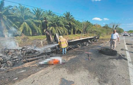 EL percance entre la camioneta donde viajaban los obreros y un automóvil ocurrió en la carretera conocida como “de la muerte”, cerca de Muyil.- (Justino Xiu)