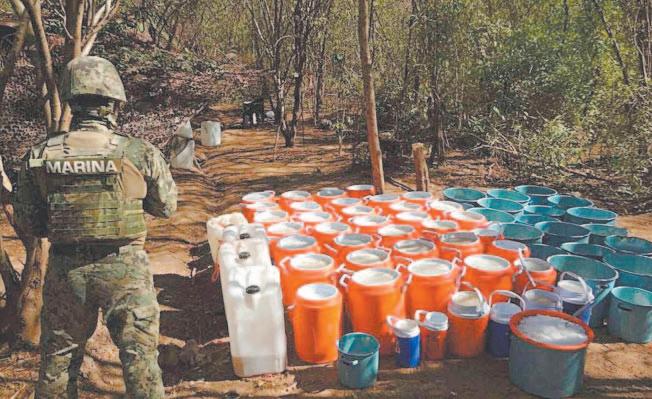 CULIACÁN, Sin.- En los poblados de Amatán y Sanalona, en el extremo Oriente de la ciudad de Culiacán, en Sinaloa, personal naval descubrió cuatro laboratorios clandestinos para procesar drogas sintéticas; en estos sitios se aseguró una tonelada del narcótico conocido como cristal, en proceso de secado, y 9.7 toneladas de masa de recursos químicos en proceso de cocimiento.