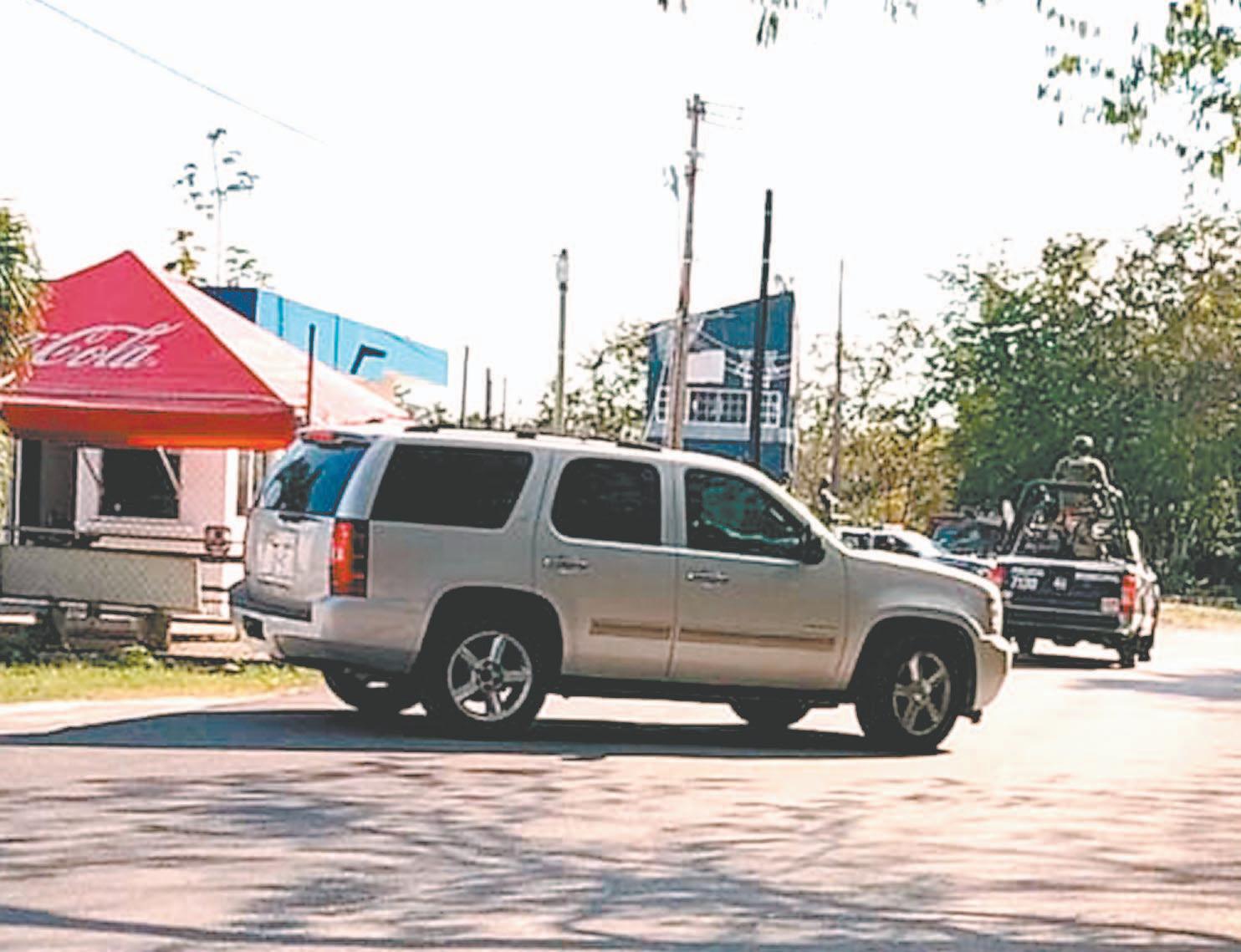 La Secretaría de Seguridad Pública del Estado informó que estas tres personas trasportaban granadas, cargadores abastecidos, municiones, cascos y chalecos tácticos y hierba verde con las características de la marihuana.