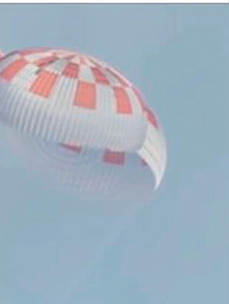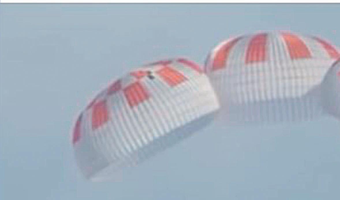 La cápsula Crew Dragon de SpaceX llamada Freedom , que transportaba a tres astronautas de la NASA y un compañero de tripulación italiano de la Agencia Espacial Europea, se lanzó en paracaídas al mar al final de un vuelo autónomo de cinco horas a casa desde la EEI.