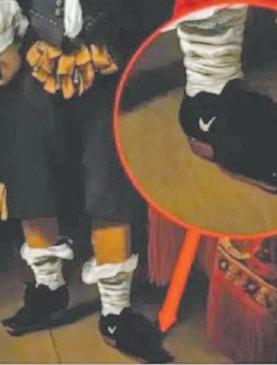 de repente: “Le dije a mi hija: ‘Espera, ¿lleva ese niño un par de zapatillas Nike ?’”, explicó Fiona Foskett, de 57 años, que vio el detalle inusual en el cuadro cuando iba acompañada de su hija, Holly, de 23. Pero eso no fue todo, también