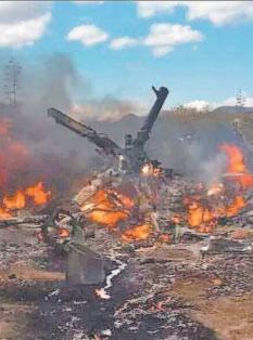 Luego de cinco horas del desplome del helicóptero MI-17 fuentes militares confirmaron la muerte de dos de sus tripulantes y lesiones graves de dos personas más.