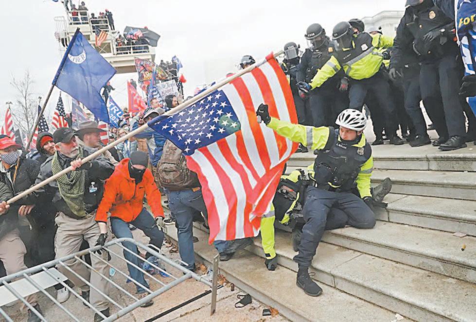 La bandera nacional invertida se convirtió en un signo de protesta política y se usó para expresar el apoyo a las afirmaciones de Trump de que le habían robado las elecciones.
