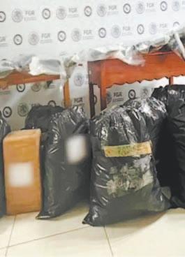 102 dos bolsitas de marihuana, 99 dosis de una sustancia parecida a la cocaína, un arma de fuego corta, un cargador y 14 cartuchos útiles, un arma de fuego tipo subametralladora abastecida con 11 cartuchos útiles, dos cangureras y dinero en efectivo.