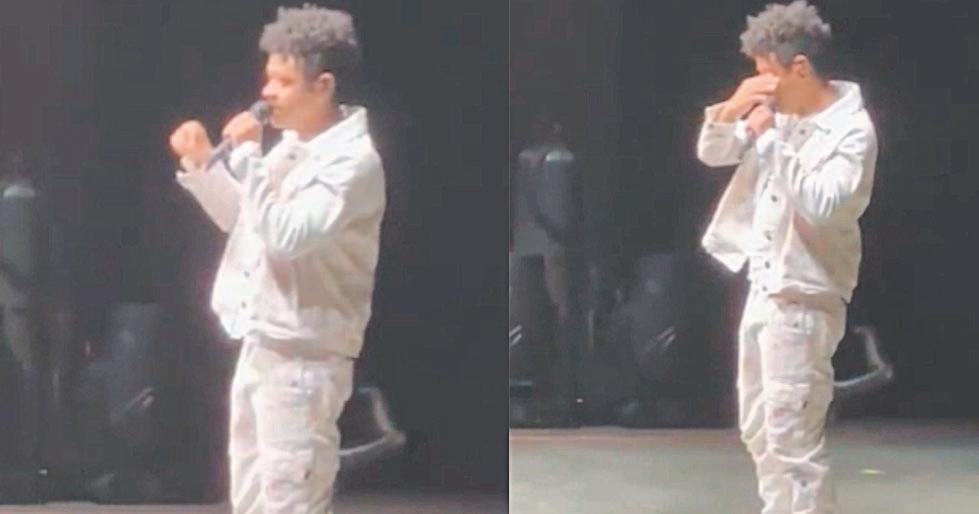 En el video que empezó a circular se ve a la presentadora de pie, pero poco a poco se va acomodando, para luego desvanecerse y desaparecer de la imagen.