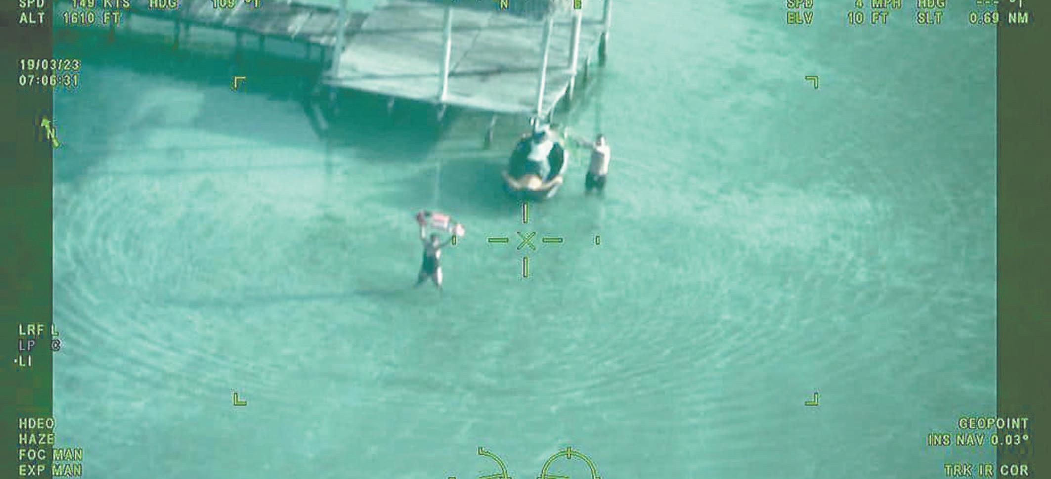 Marinos logran rescate de dos turistas varados en muelle de Bacalar