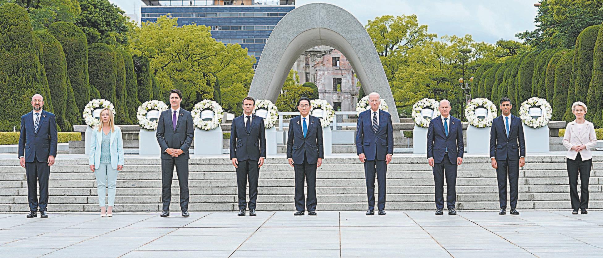 Los líderes asistentes rindieron homenaje ayer a las víctimas de la destrucción de la ciudad japonesa de Hiroshima en el 1945 por una bomba atómica lanzada por Estados Unidos.