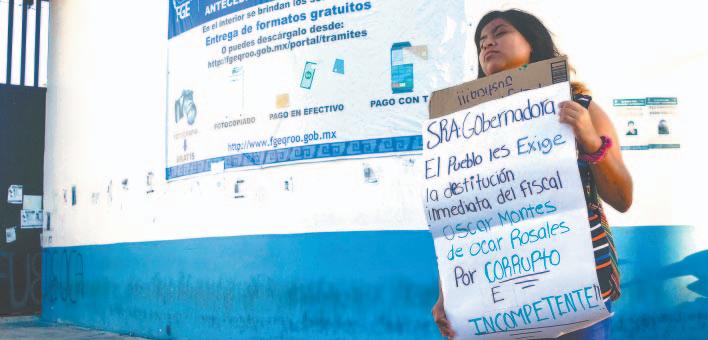 PARIENTES de otras víctimas, junto con Deysi Blanco, acudieron ayer con pancartas y bloquearon la avenida Xcaret, afuera de las instalaciones de la Fiscalía General del Estado, para demandar resultados en sus respectivas denuncias.- (M. Hernández)