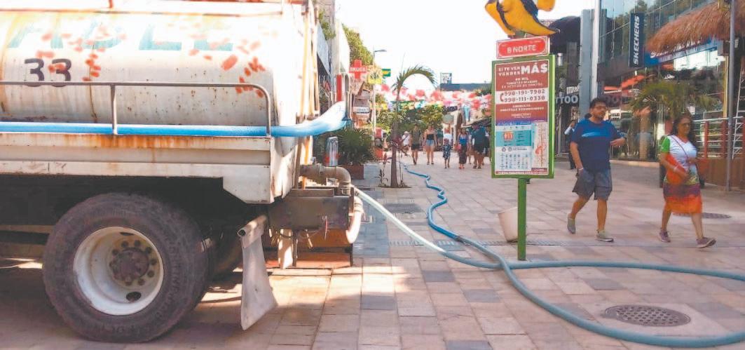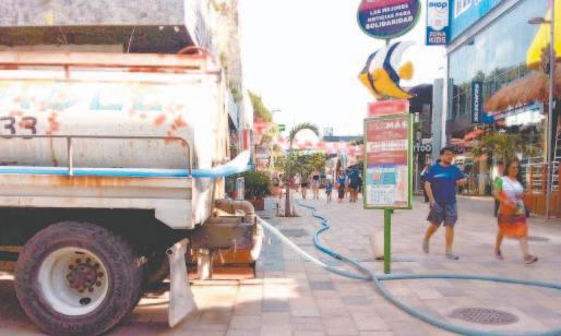 EN Playa del Carmen se observaron camiones para surtir del líquido a los establecimientos comerciales ubicados en la Quinta Avenida.- (F. Morcillo)