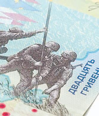 Por lo que el Banco Nacional de Ucrania presentó un billete conmemorativo al aniversario de la guerra, que muestra a tres sol-